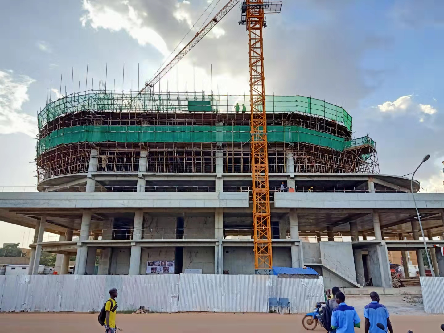 On the morning of October 6, Mr. KI-ZERBO, the National Director of Central?Bank?of?West?African?States (BCEAO) in Burkina Faso, shown by Mr. OUATTARA, the General Manager of CORIS Bank (the owner), came to the construction site of CORIS Bank office building in Burkina Faso. After listening to the briefing by the owner’s representative, supervising party and the project team, the delegation, accompanied by Wu Zhixin, the project team leader, visited the construction site.