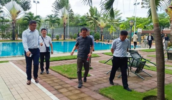 Ambassador Zhao Bin and his delegation came to the residential and office areas of WIETC DRC Company and visited the staff dormitories, library, leisure & sports venue and vegetable plantations. Chairman Tu Dajun reported to the ambassador about the company's development in DRC, providing an overview of the airport, roads, public buildings and other projects built by the company over the past decade in DRC.