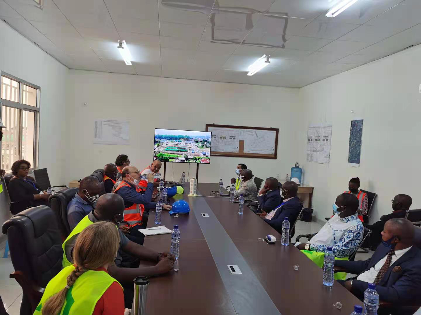 代表団は、水源プラント、濁水パイプライン、水処理プラントなどの施工現場の施工狀況を視察し、工事の進捗、資金使用狀況、人員配置狀況、工事全體の計畫?配置、新型肺炎流行の工事への影響およびプロジェクトチームが講じた予防?抑制措置などを聞いた。現場視察が終わった後、代表団は、それぞれ事業主體、監理者および當社からの進捗、品質、環境安全管理などについての詳しい報告を聴取した。