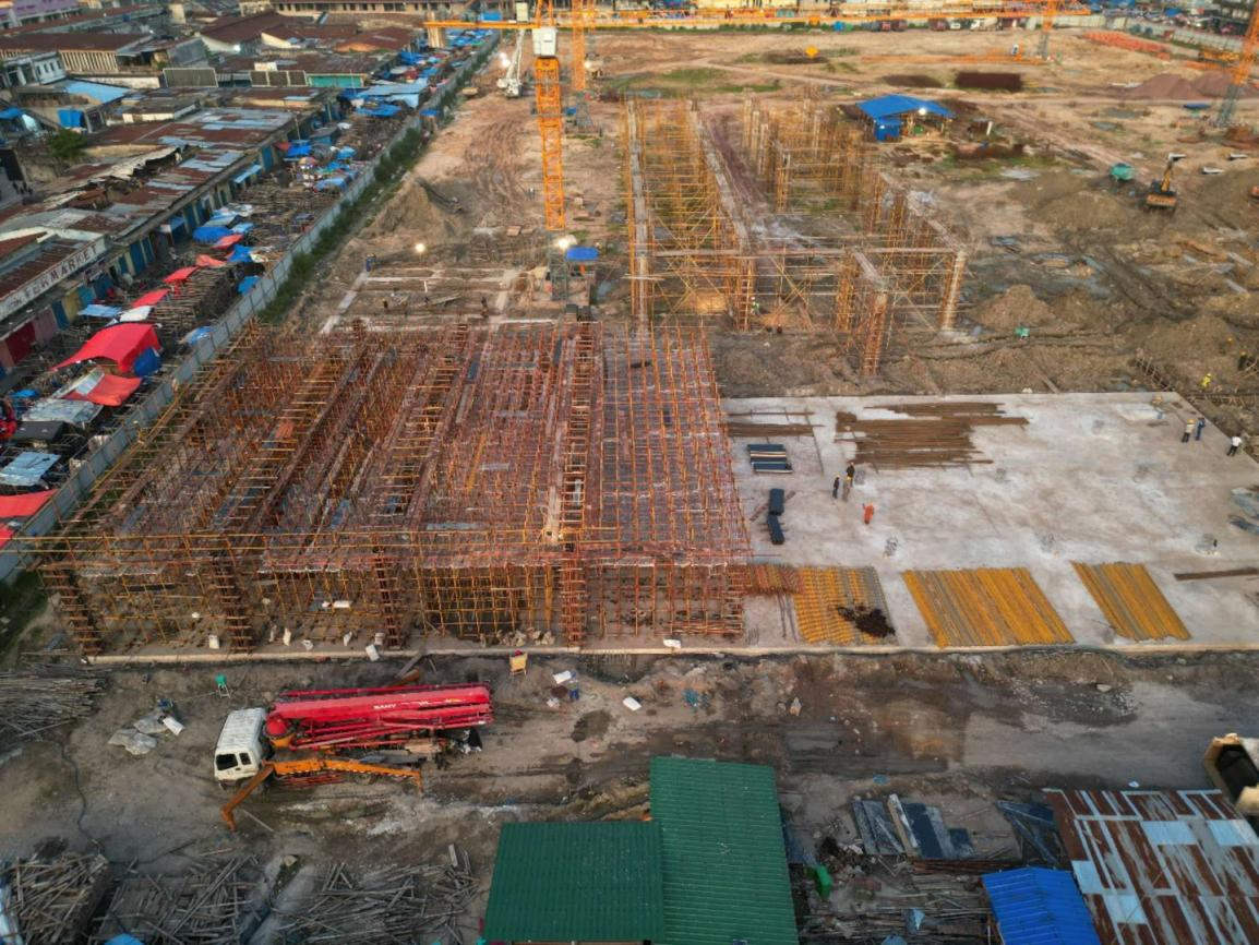 現地時間4月22日21時30分、最後の鉄筋篭の據付完了に伴い、コンゴ民主共和國キンシャサ中央大市場プロジェクトの杭基礎工事は順調裏に完成した。本件プロジェクトは2022年8月18日に著工され、プロジェクトチームは多くの困難を克服、超過勤務を重ね、絶えず続く施工を行い、様々な杭基礎1442本を完成させ、主體工事の工期厳守の為に堅固な基盤を築いた。次段階では、プロジェクトチームは引き続き強力な実戦力を維持し、清水型枠13萬平方メートル、生コン打設4萬平方メートル、清水壁構造體450萬枚の施工任務にダッシュをかけ、會社とオーナーに対し満足のいく答案の提出に努めている。