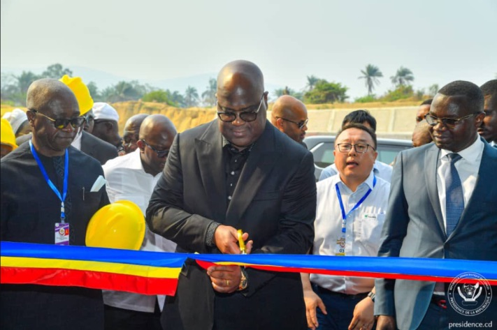 チセケディ大統(tǒng)領(lǐng)はタイル工場の落成式にテープカットを行う