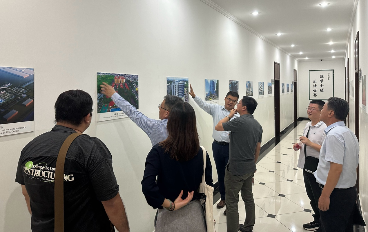 その続きで、趙斌大使一行は建設中のコンゴ民主共和國チューリップホテルの事務棟プロジェクト現場と金城オアシス団地を視察した。于徳江総経理は団地概覧図と照らし合わせて、大使一行に団地全體の計畫や間取りなどの狀況を紹介した。