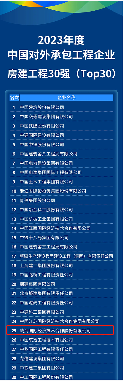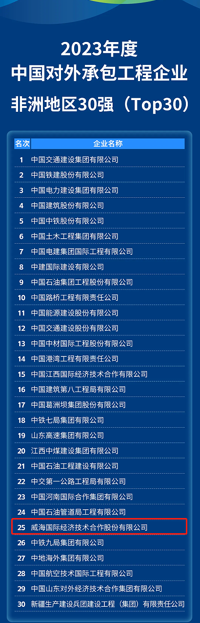 5月7日、2024対外請負工事業界発展大會の開催期間中、中國対外請負工事商會は2023年度中國対外請負工事企業に関する複數のランキングを発表した。會社は中國対外請負工事企業ベスト100選(65位)、住宅建設工事ベスト30選(25位)、アフリカ地區事業ベスト30選(25位)に選ばれ、會社の成長続く海外発展力を改めて體現した。