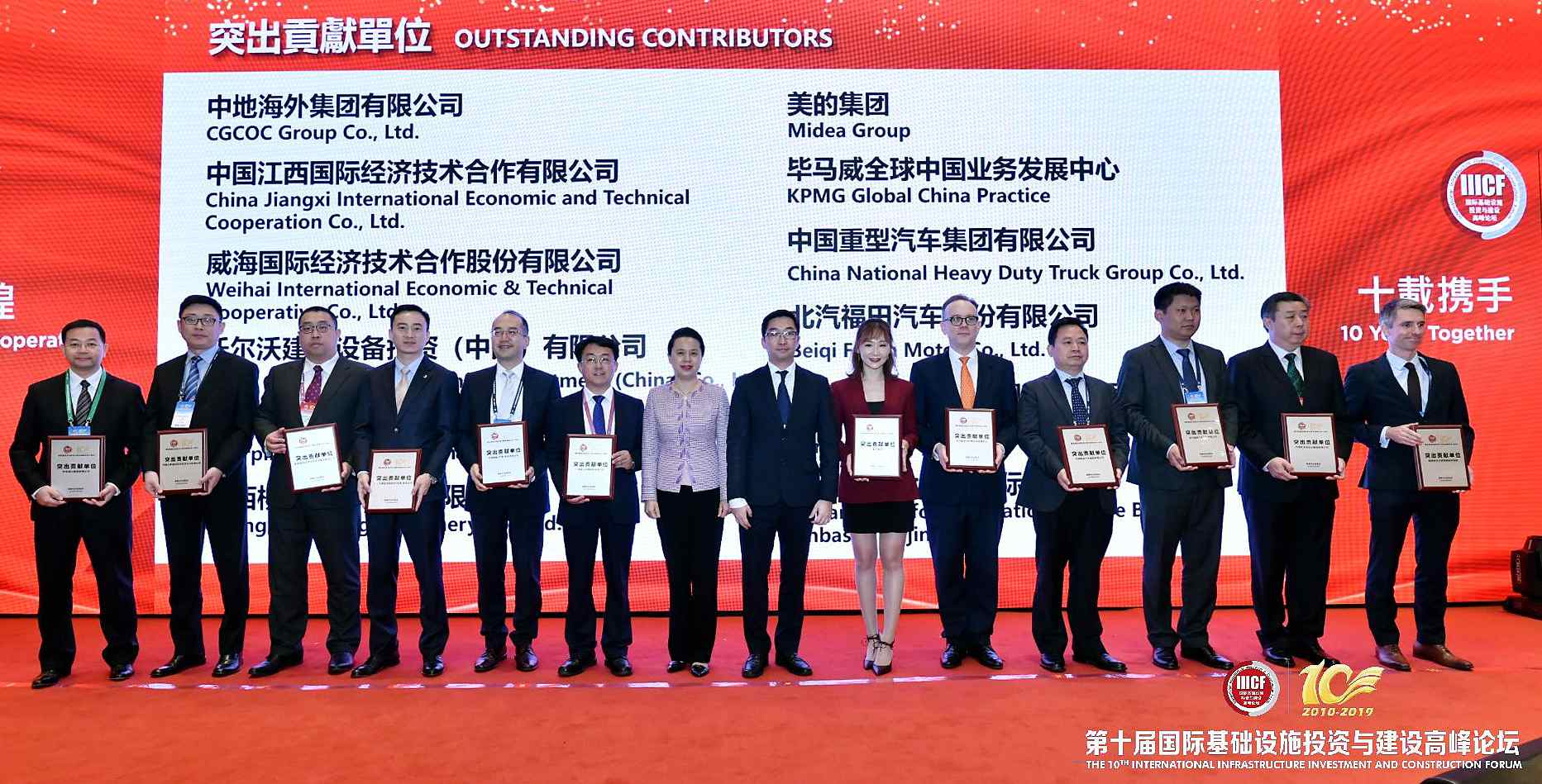 今年是國際基礎設施投資與建設高峰論壇舉辦十周年。為感謝十年來為國際基建論壇創立、發展和壯大作出積極貢獻的國際、國內機構,高峰論壇組委會向48家單位頒發了十周年突出貢獻獎,公司獲此殊榮。