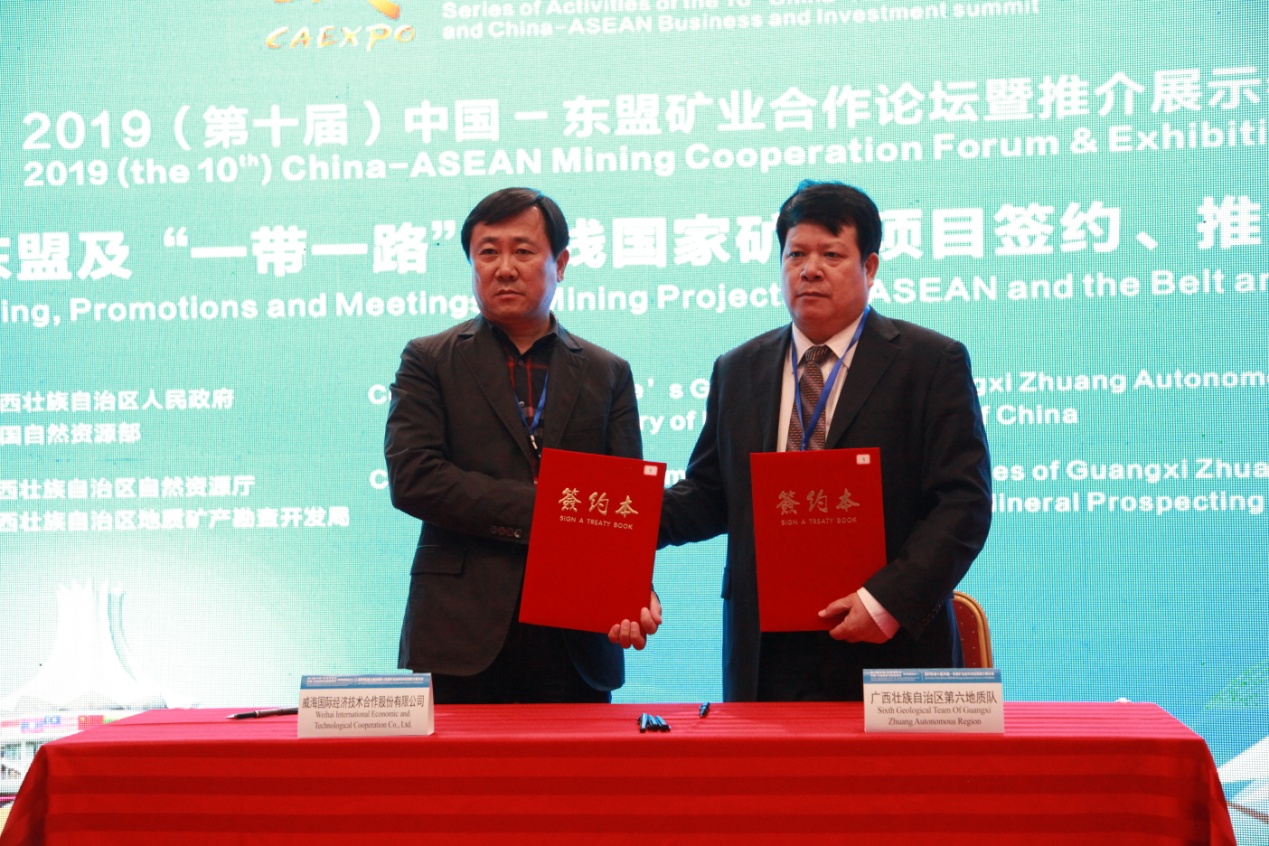 會上,劉正向與會人員介紹了公司情況,對公司礦業業務及重點項目進行了推介,并與參會同行進行了交流,建立了聯系。李軍海總監代表公司與廣西第六地質隊隊長雷英憑簽訂《非洲礦產資源合作勘查開發框架協議》。