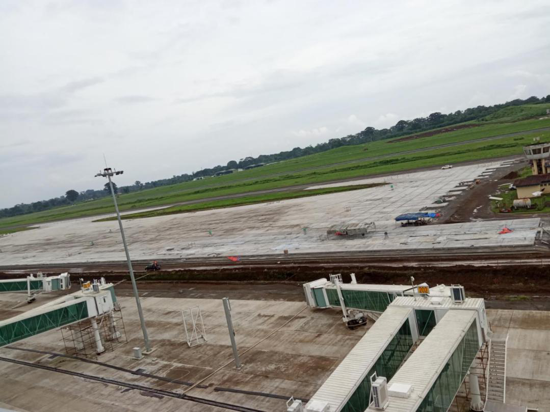 本項(xiàng)目位于赤道幾內(nèi)亞首都馬拉博市,在新航站樓西側(cè)新建一站坪及其附屬設(shè)施,主要包括新建站坪、兩條聯(lián)絡(luò)道、消防站、汽車(chē)維修廠、供油管線、航站樓與站坪間的過(guò)渡段及場(chǎng)外道路、圍界等,總面積10萬(wàn)平米,滿(mǎn)足F類(lèi)飛機(jī)??恳?。